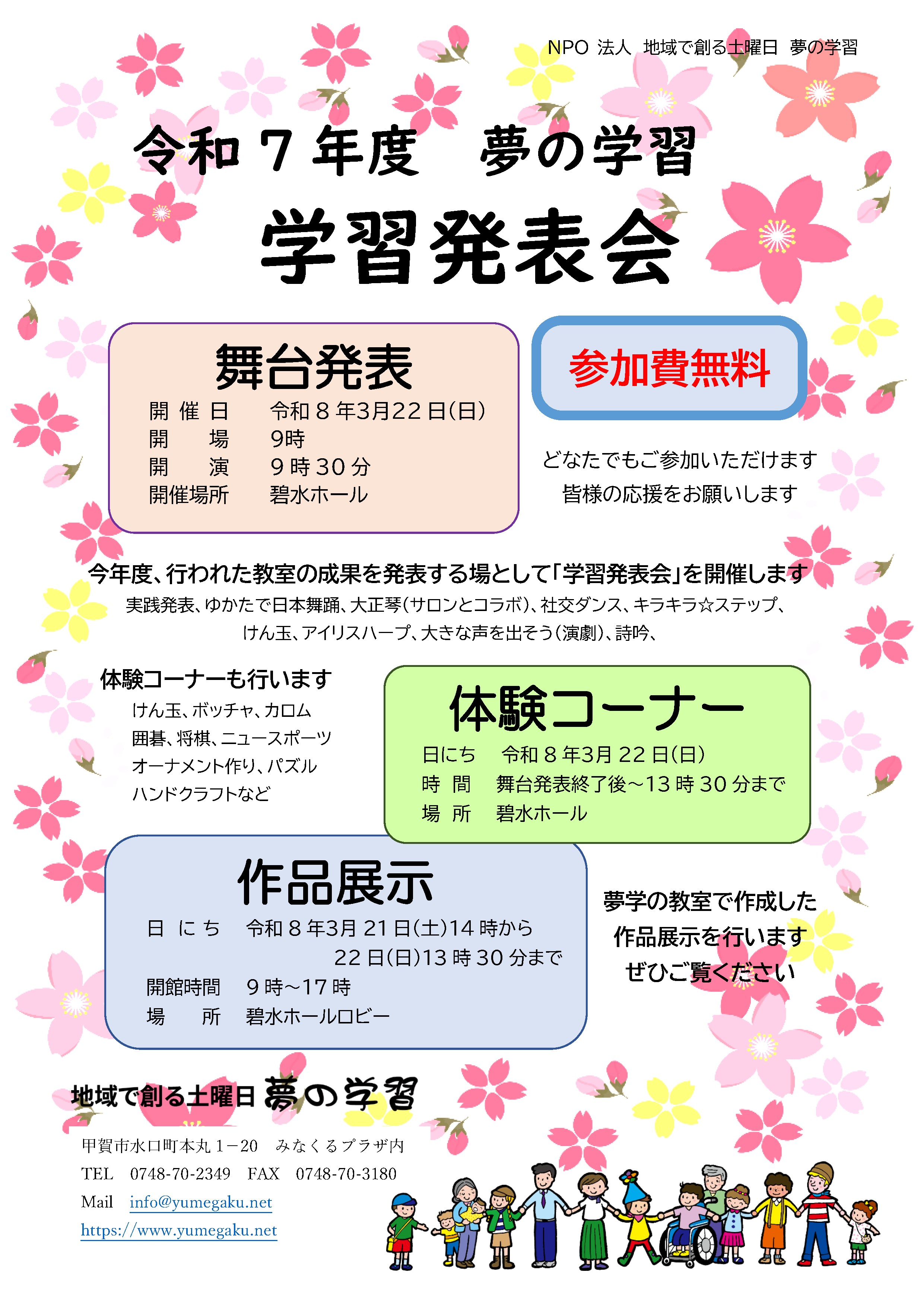 「夢の学習」は、地域の小中学生と大人が、地域の居場所づくり・生涯学習・共生社会の実現を目指しています!